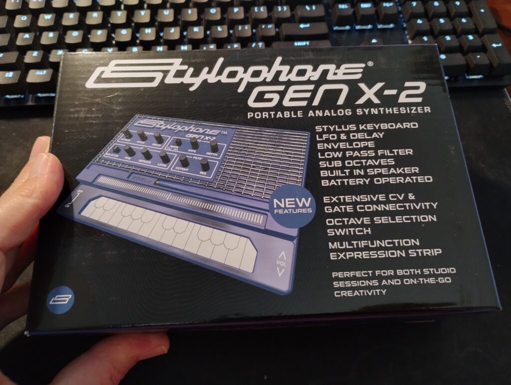 Interested in all things synthesizer, I wanted a PITCHED synth that I could, for example, lay down a bass line then Theremin over the top of it. I was following the re-development of the Stylophone Gen X2 – that little stylus-based “keyboard” that made buzzy sounds and noticed they had re-worked it to include a whole lot of synth features (delay, envelope shaping, CV in and out etc) and added myself to the waiting list for when they became available. It seemed to take months for my local supplier to get stock – long after they were released overseas – all good.